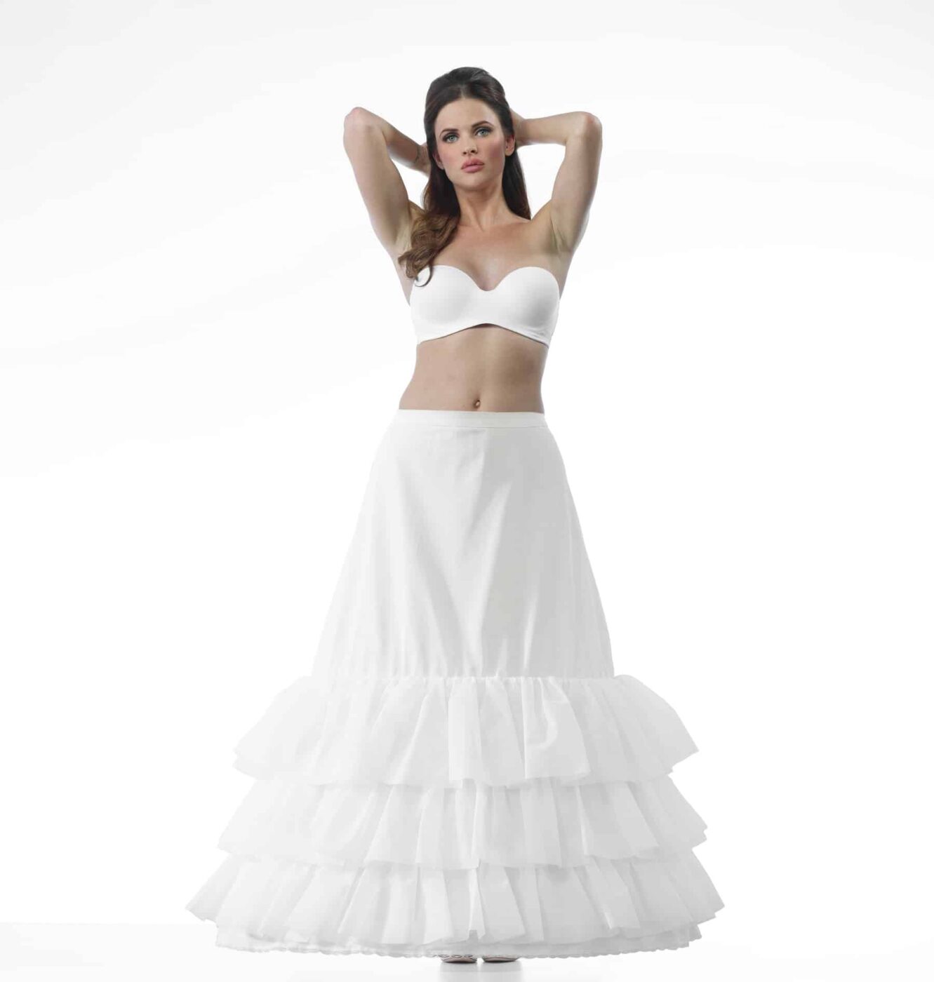 Deze prinses-petticoat van Poirier heeft een omtrek van 300 cm en beschikt over 4 baleinen. De 3 charmeuse stroken zorgen ervoor dat de baleinen onzichtbaar zijn onder de bruidsjapon en geven tegelijkertijd een mooi volume.