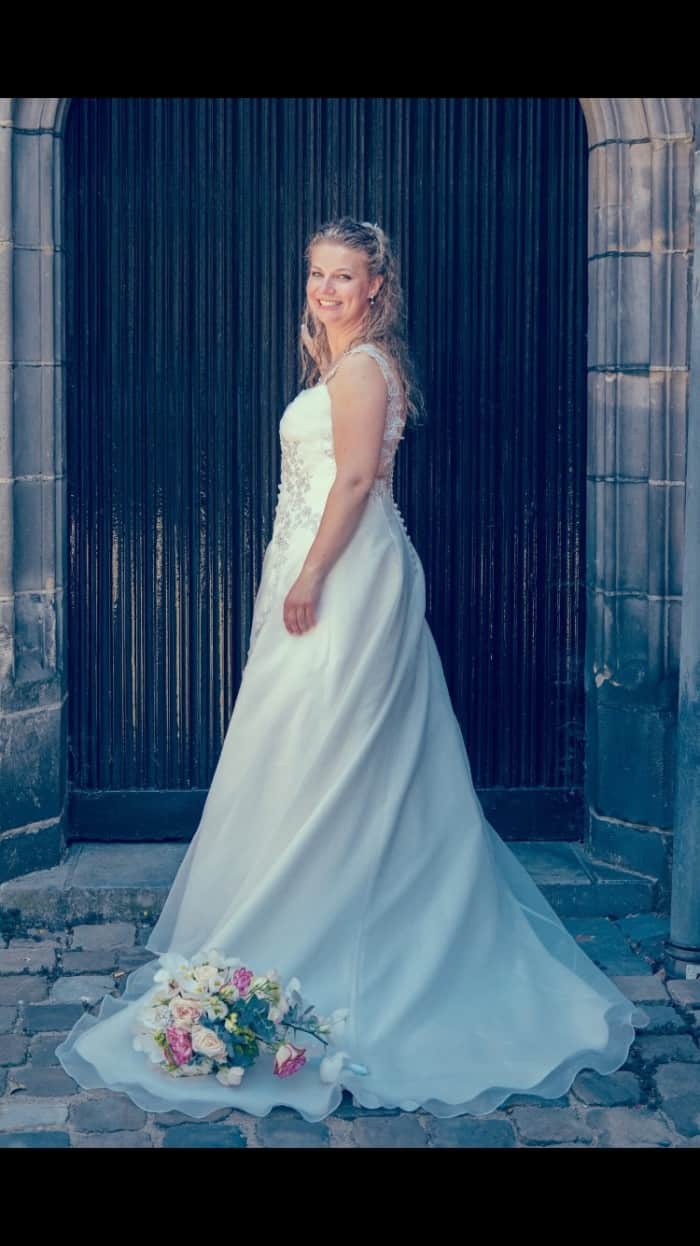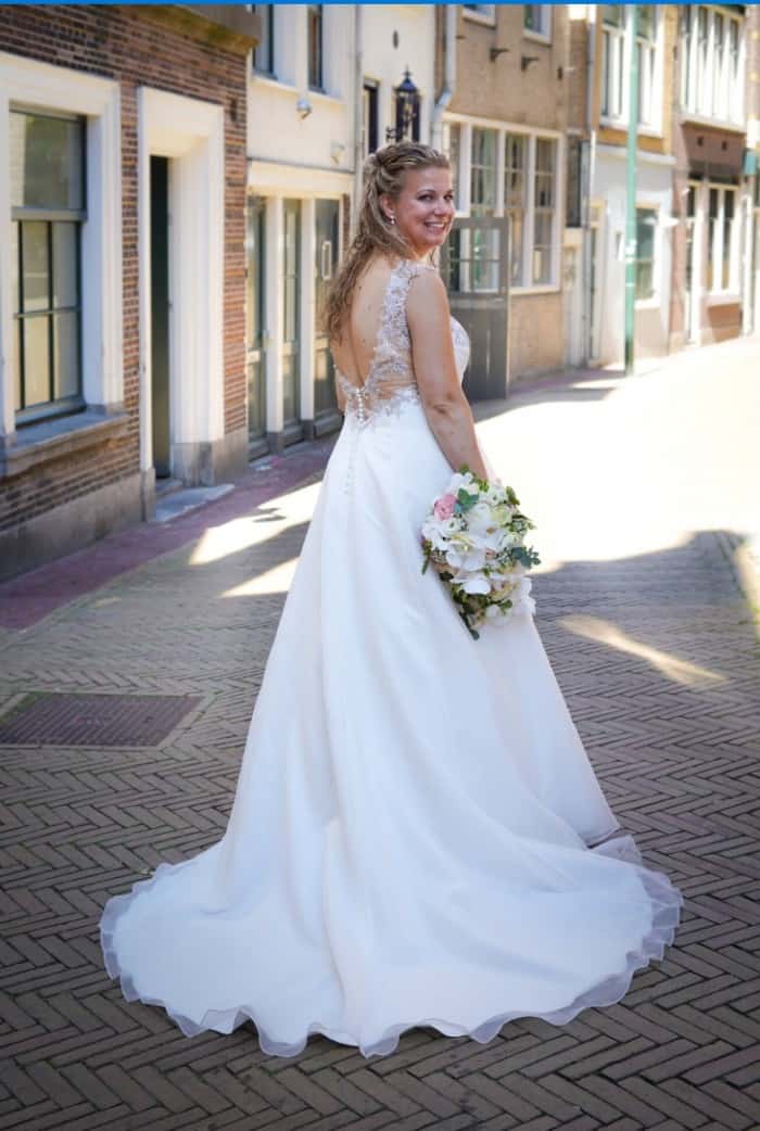 Wij hebben een fantastische dag gehad in de museum tuin in Gouda. De jurk zat als gegoten. De onderste borduursels zijn er later opgezet dus hij was volledig op maat gemaakt. De meiden van weddings zijn super vriendelijk.