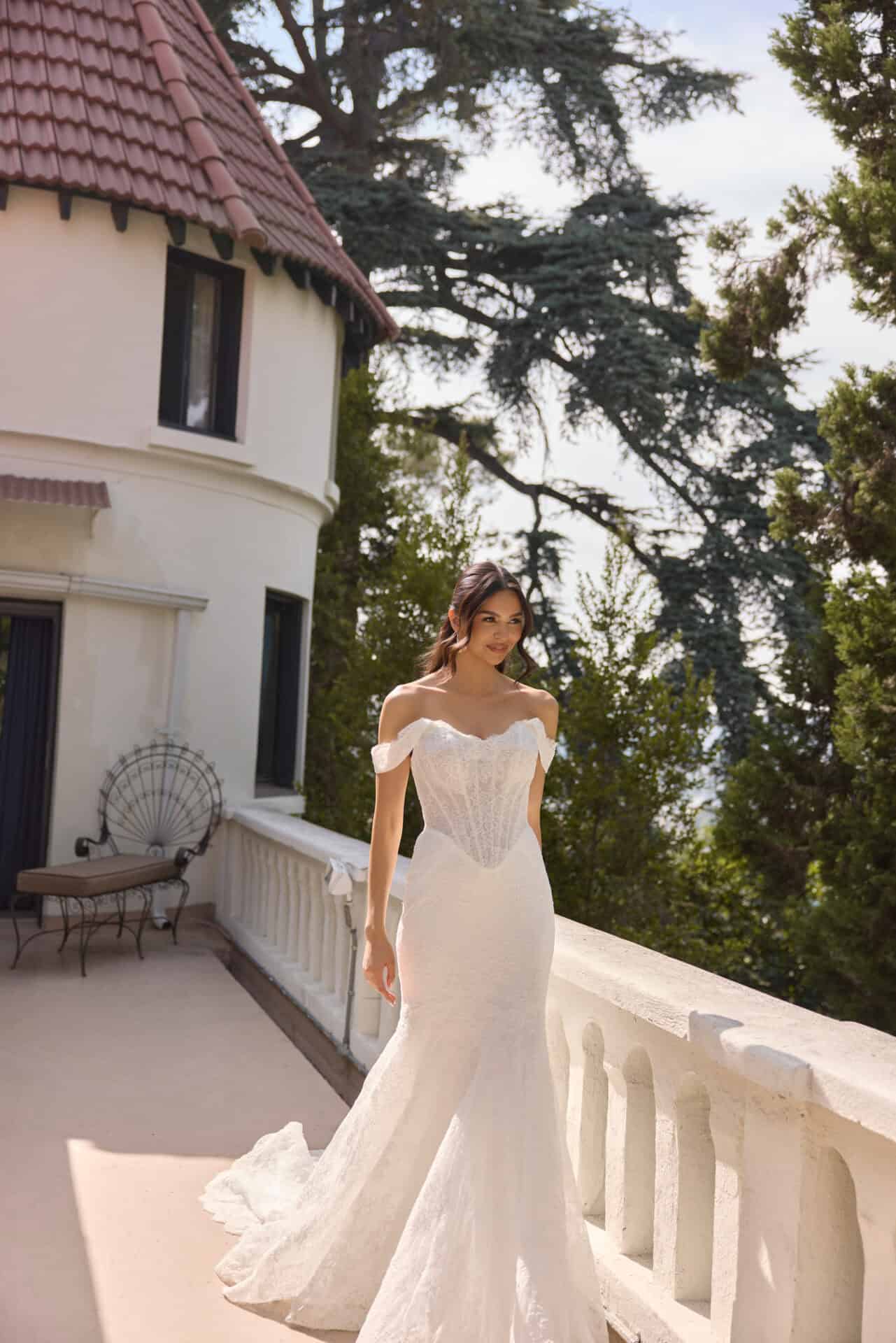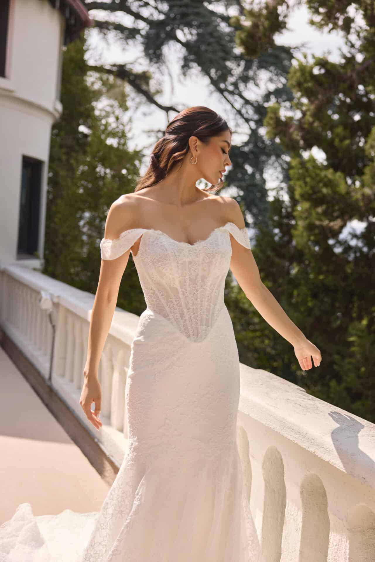 De D4456 van Essense of Australia is een romantische fit & flare-jurk met een tijdloos karakter. De jurk is volledig uitgevoerd in klassiek Frans kant, wat zorgt voor een verfijnde en luxueuze uitstraling. De basque waist en de korsettop benadrukken prachtig het silhouet, terwijl de elegante cat-eye halslijn een moderne twist toevoegt. Het transparante lijfje geeft de jurk een subtiel sensuele touch, zonder haar klassieke charme te verliezen. De afneembare off-shoulder mouwtjes bieden de mogelijkheid om te variëren in stijl; van sierlijk en zacht tot strak en verfijnd. De sleep maakt het geheel compleet.